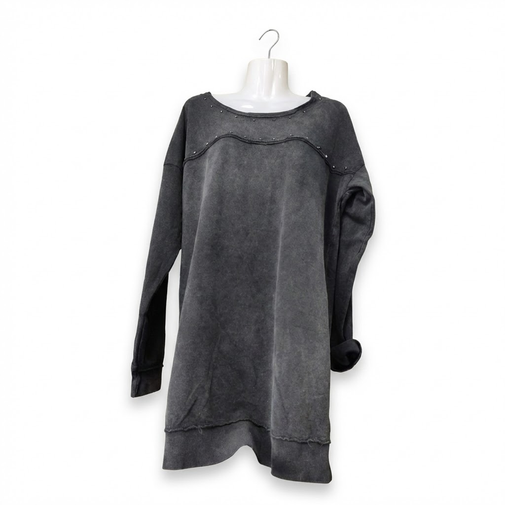 Elegancia Casual al Mejor Precio del Mercado Este lote de 40 piezas ofrece una solución de moda práctica y con estilo. El vestido presenta un acabado tipo sudadera con textura lavada, ideal para un look «effortless» que combina perfectamente con zapatillas o botas.